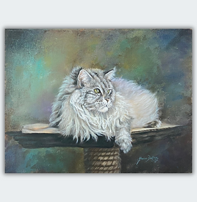 As always, I began with a Raw Umber underpainting to establish the values and structure, then built up the layers slowly to bring Leo to life. The gentle, pale background was chosen in collaboration with my client, giving the piece a soft, timeless feel that lets Leo shine.